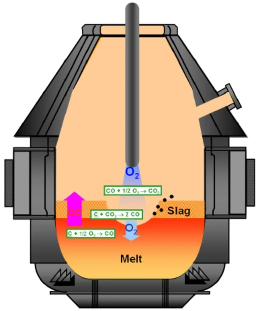 Basic Oxygen Steelmaking (BOS) is a widely adopted primary steelmaking method used to convert molten pig iron into high-quality steel. In this process, SourceX India utilizes advanced technologies where high-purity oxygen is blown through a lance over the molten iron inside a specially designed converter. The oxygen reacts with impurities in the metal, initiating exothermic oxidation reactions that generate intense heat. This rapid reaction reduces carbon, silicon, manganese, and other elements, enabling precise control over the final steel composition.